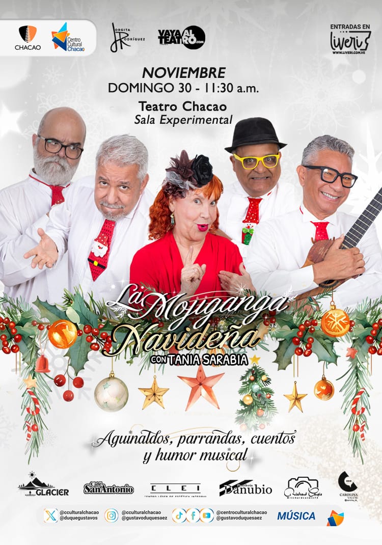Risas, música y humor para celebrar la Navidad La Mojiganga Navideña llega junto a Tania Sarabia, al Centro Cultural Chacao. El cuarteto musical humorístico “La Mojiganga” se viste de Navidad para prender la fiesta con aguinaldos, parrandas y villancicos, en la Sala Experimental del Centro Cultural Chacao,el DOMINGO 30 de Noviembre a las 11:30 a.m.